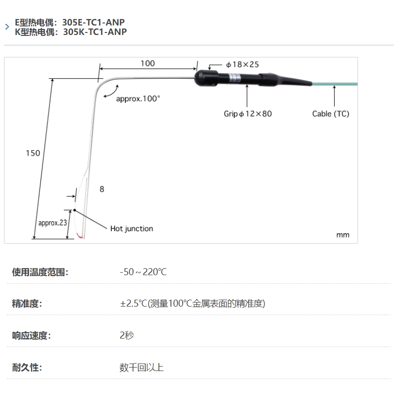 ANRITSU安立计器温度计管道内壁用表面温度传感器305-TC1-ANP